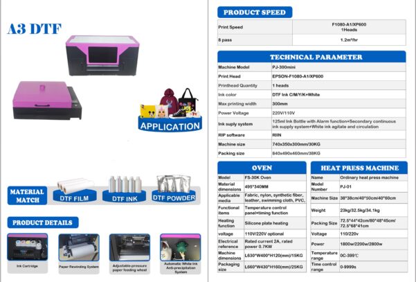 A3 Single Head DTF Printer with 12 inches width hot selling simple use direct to film printer